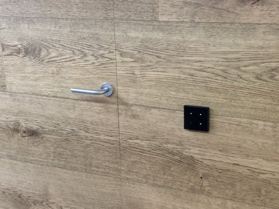 - Manejo de la puerta de entrada y barrera motorizada desde domótica mediante app, desde pulsadores táctiles capacitivos y según el estado del local (abierto/cerrado/ausencia corta). Gracias a la integración del sistema de alarma en el sistema domótico, se puede saber si la barrera está abierta o cerrada.